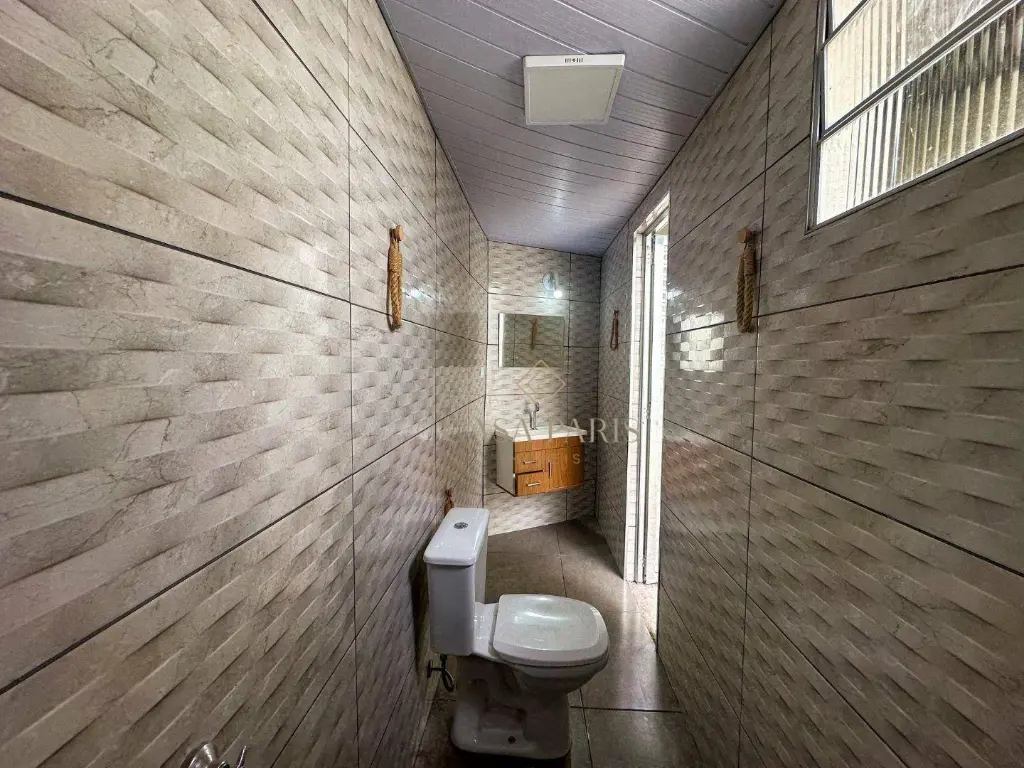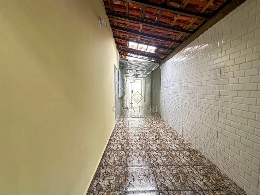 Casa de 65m² com 02 dormitórios, sala, cozinha, área de serviço, 02 banheiros sociais e 02 vagas de garagem.