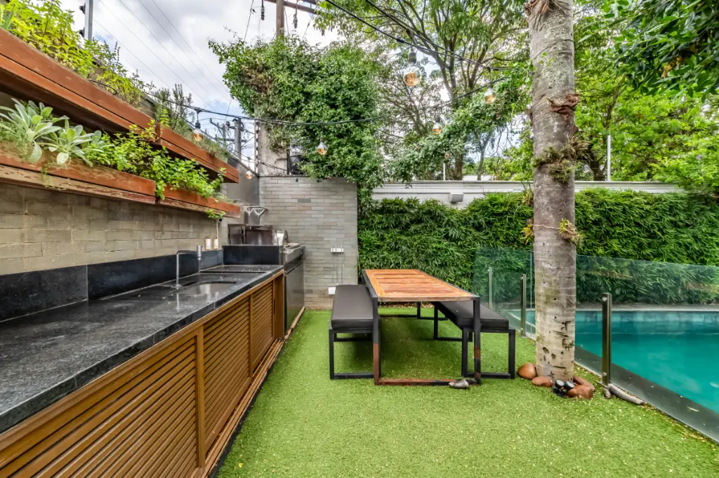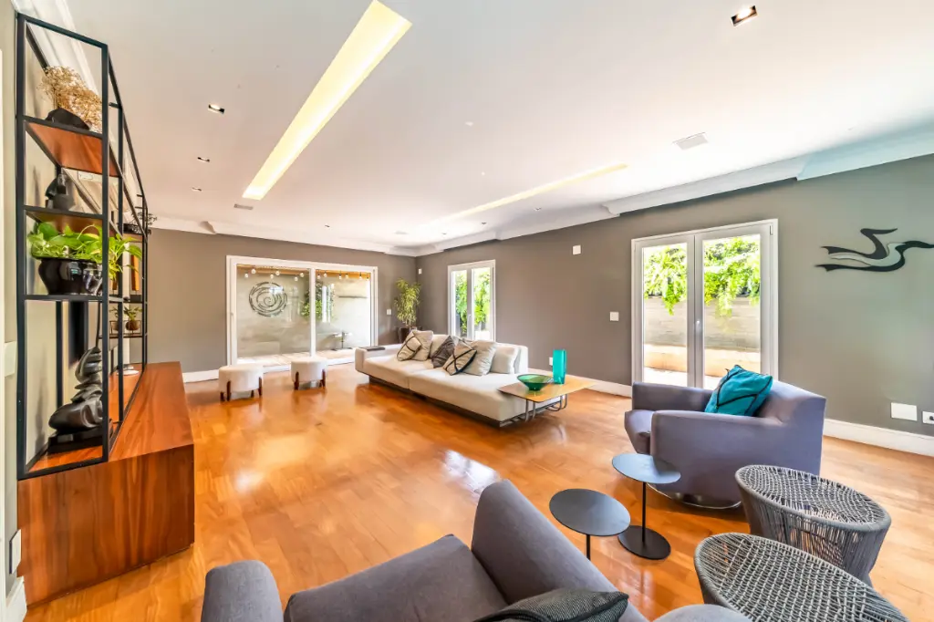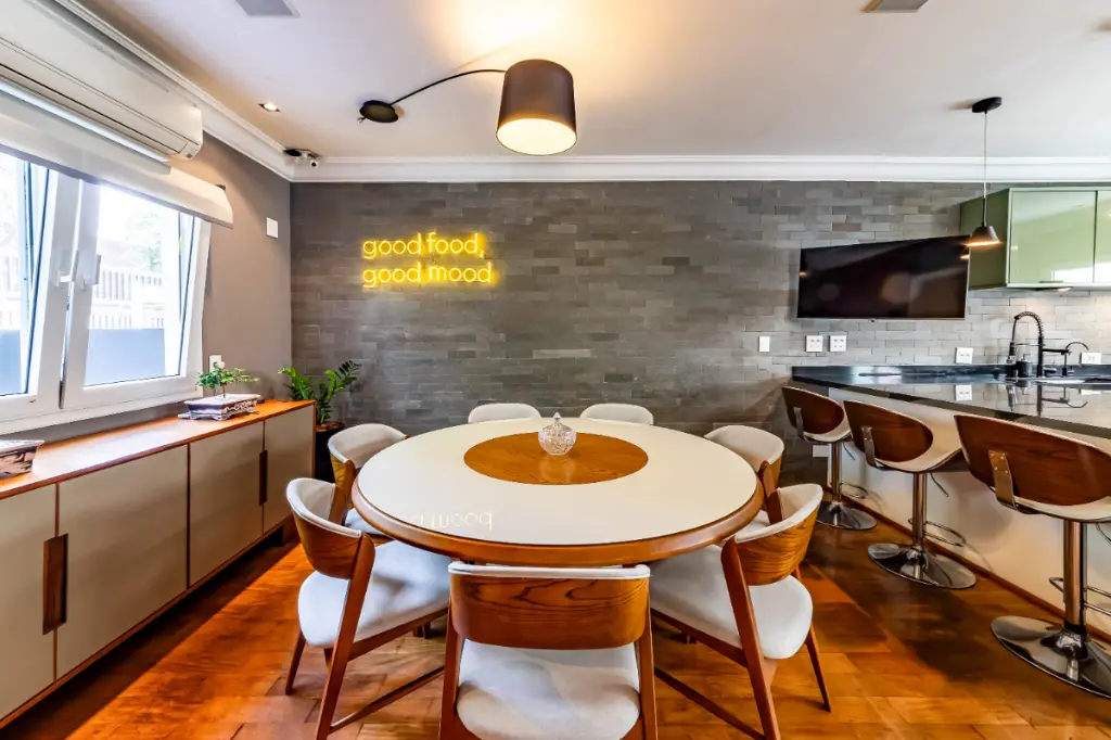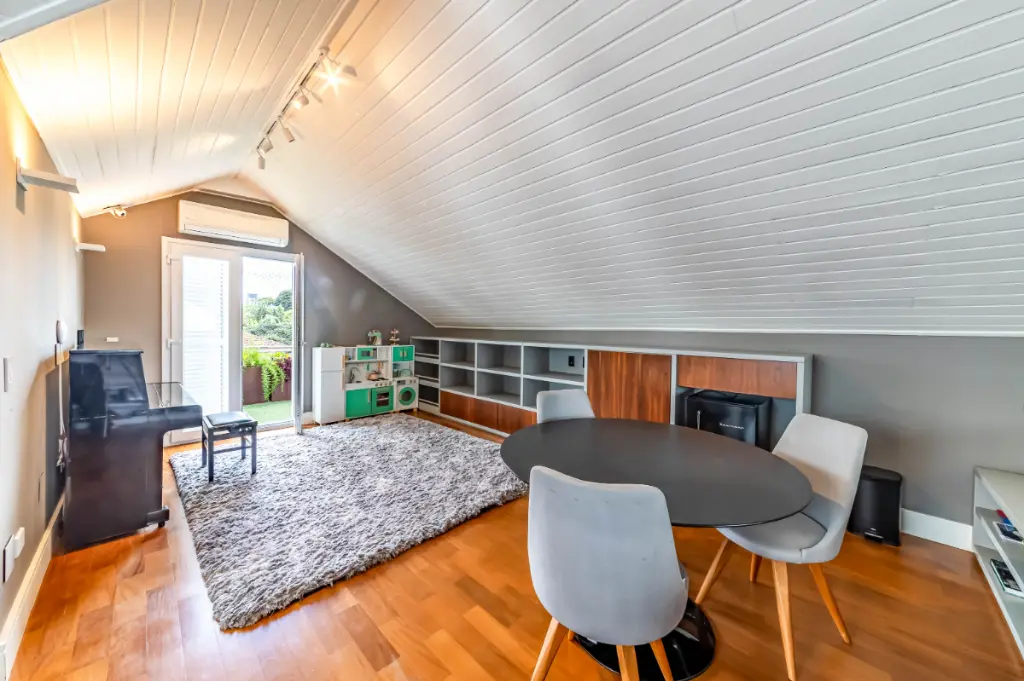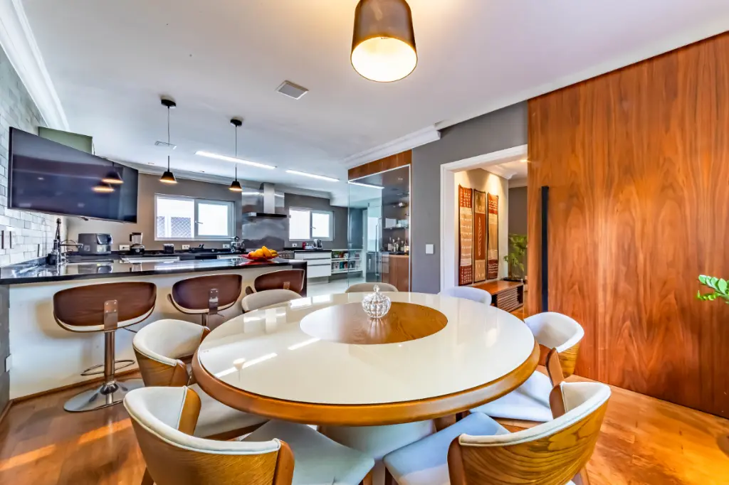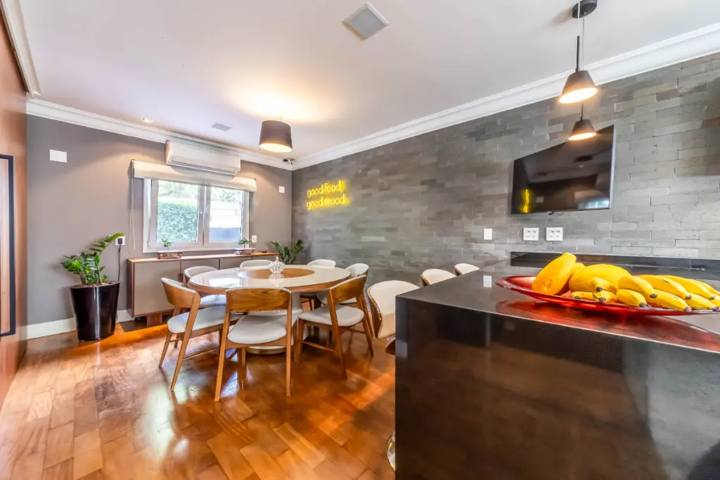 Casa moderna, integrada e bem equipada para viver com tranquilidade, no Alto da Boa Vista. Integração bem pensada A área social é fluida e conecta sala de estar, jantar e cozinha de forma natural. O living se volta para a área externa, criando uma relação entre os ambientes e o lazer. A presença da adega e a boa distribuição dos espaços reforçam a sensação de casa viva, prática e agradável para o dia a dia. Lazer ao ar livre A área externa concentra alguns dos grandes destaques da casa. Piscina aquecida, churrasqueira e um espaço gourmet criam um cenário para relaxar e reunir pessoas. Tudo funciona de forma integrada à casa, com boa insolação e uso fácil, transformando o lazer em parte da rotina. Conforto e tecnologia As quatro suítes oferecem ótimos armários e ar-condicionado, com uma delas atualmente configurada como escritório, facilmente reversível. A casa conta ainda com automação de iluminação, som e TV, além de sistema de energia solar. O projeto combina conforto com uma vivência tranquila no bairro.