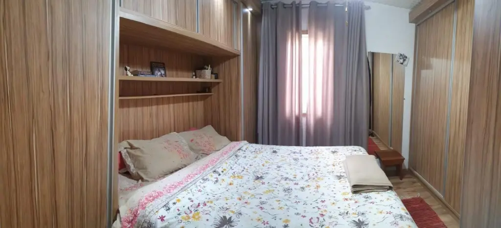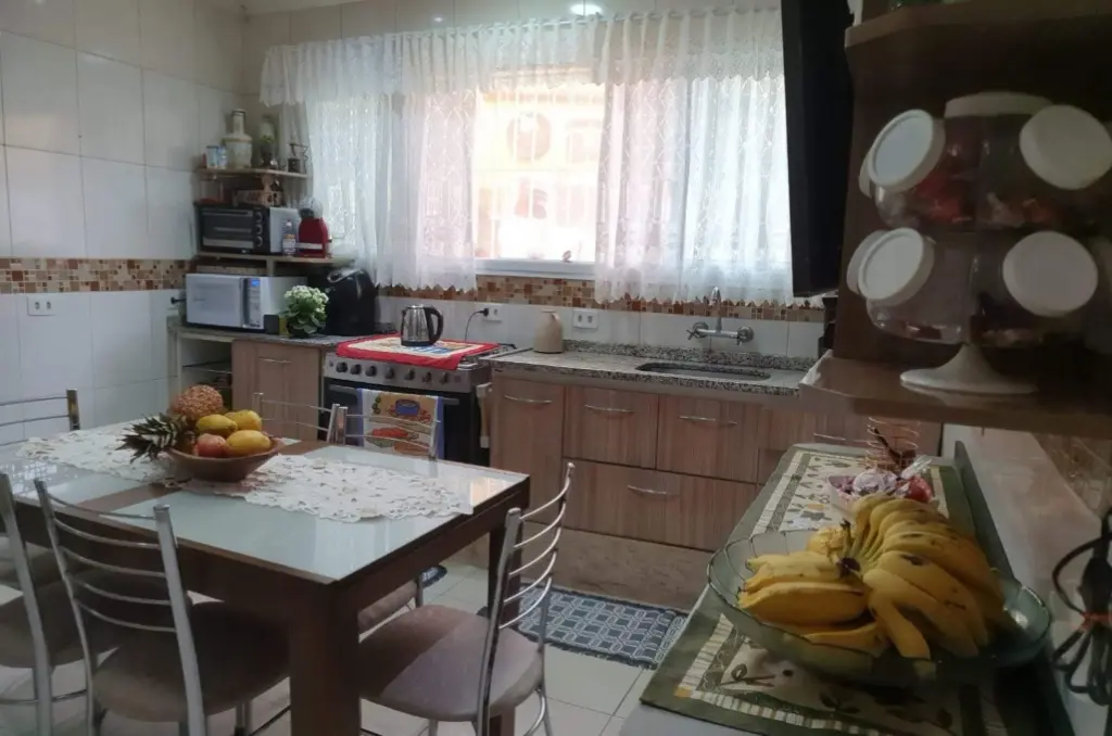 Casa com 3 dormitórios, sendo 1 com móveis planejados, sala, cozinha com móveis planejados, área de serviço, 2 banheiros, quintal, churrasqueira e garagem com 1 vaga com portão automático e interfone.