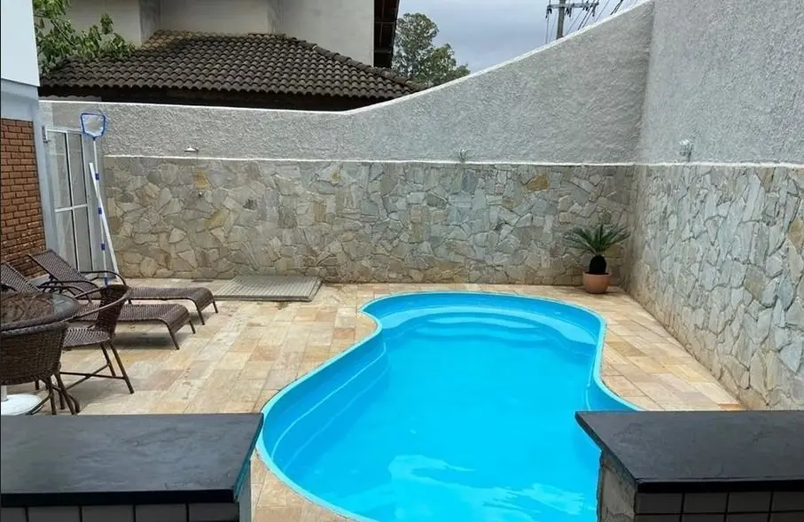 SOBRADO NO HORTO FLORESTAL À VENDA 3 SALAS - 3 SUÍTES - PISCINA - CHURRASQUEIRA Casa assobradada com 300 m² a. construída Sala 3 ambientes com lareira, varanda frontal com vista para o jardim e lavabo Cozinha com copa e armários - Lavanderia 3 suítes, todas com armários e box blindex: sendo uma suíte master com banheira hidro e com uma sala íntima (um segundo mezanino), acessada por escada, e que também, pode ser utilizada como um escritório. Saleta Hall com um mezanino Quintal dos fundos com piscina e espaço gourmet com churrasqueira, forno à lenha e pia. Garagem coberta para 3 veículos O terreno total mede 500m² (10m X 50m), com um amplo jardim na parte da frente, medindo 10m por 17m e garagem coberta para 3 veículos independentes. A garagem, também pode ser utilizada como um salão de festas, visto que conta com cozinha, lavabo, depósito e, que dá acesso à casa, via uma sala intermediária acoplada (hoje biblioteca com opção para um escritório), e através desta, se tem o acesso ao piso superior principal. Além do acesso interno (pela garagem), tem-se o acesso externo frontal principal para a casa, uma escada levando a um espaçoso e agradável terraço, de 10m²x7m², ambos, guarnecidos por guarda-corpos em alumínio. A casa é munida de câmeras de segurança, mesmo tendo uma guarita na frente e outra nos fundos.