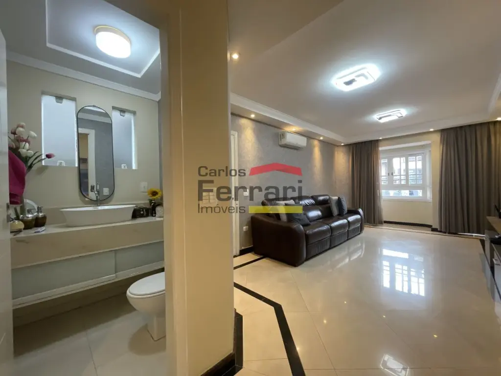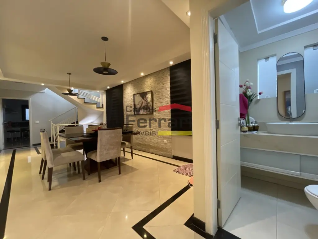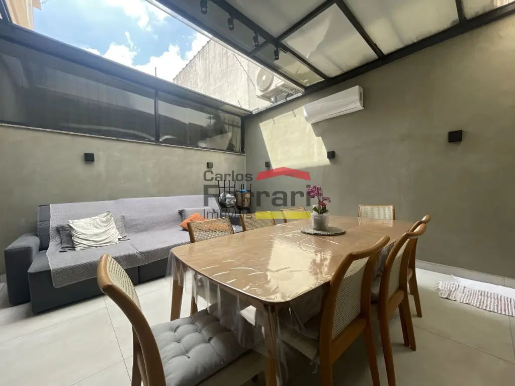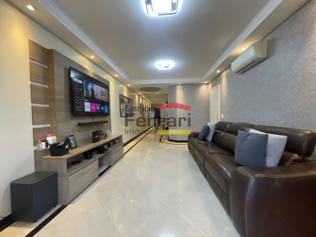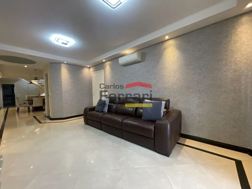 Sobrado Santa Terezinha semi mobiliado, 300m quadrados, 3suítes, master com varanda e closed, 6 vagas de garagem, possui 3 pavimentos sendo o superior com 3 suites, uma com closed e varanda, ambientes amplos e de bom gosto . com armários embutidos, ar condicionado em todos ambientes, piso em madeira, no piso inferior sala ampla revestida em porcelanato, sala de TV, sala de jantar, sanca rebaixada com iluminação de LED, Ar condicionado, área de serviço funcional, no térreo area gourmet, com churrasqueira, ilha com cooktop teto retrátil com ar condicionado .local nobre. Agende uma viasita .