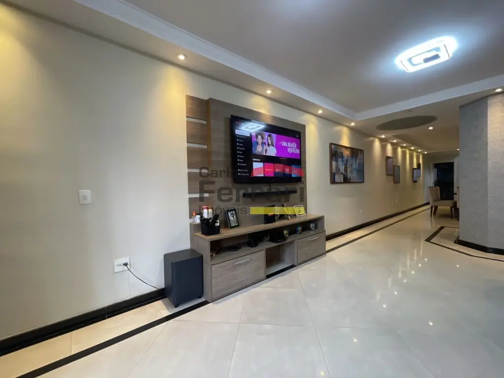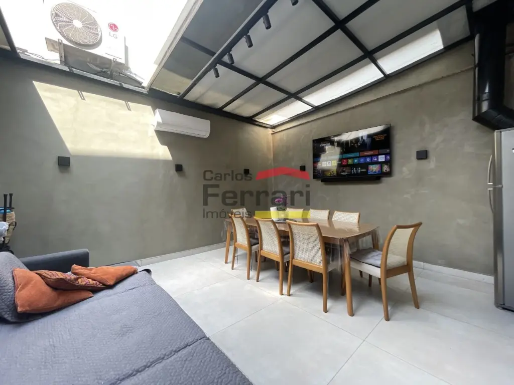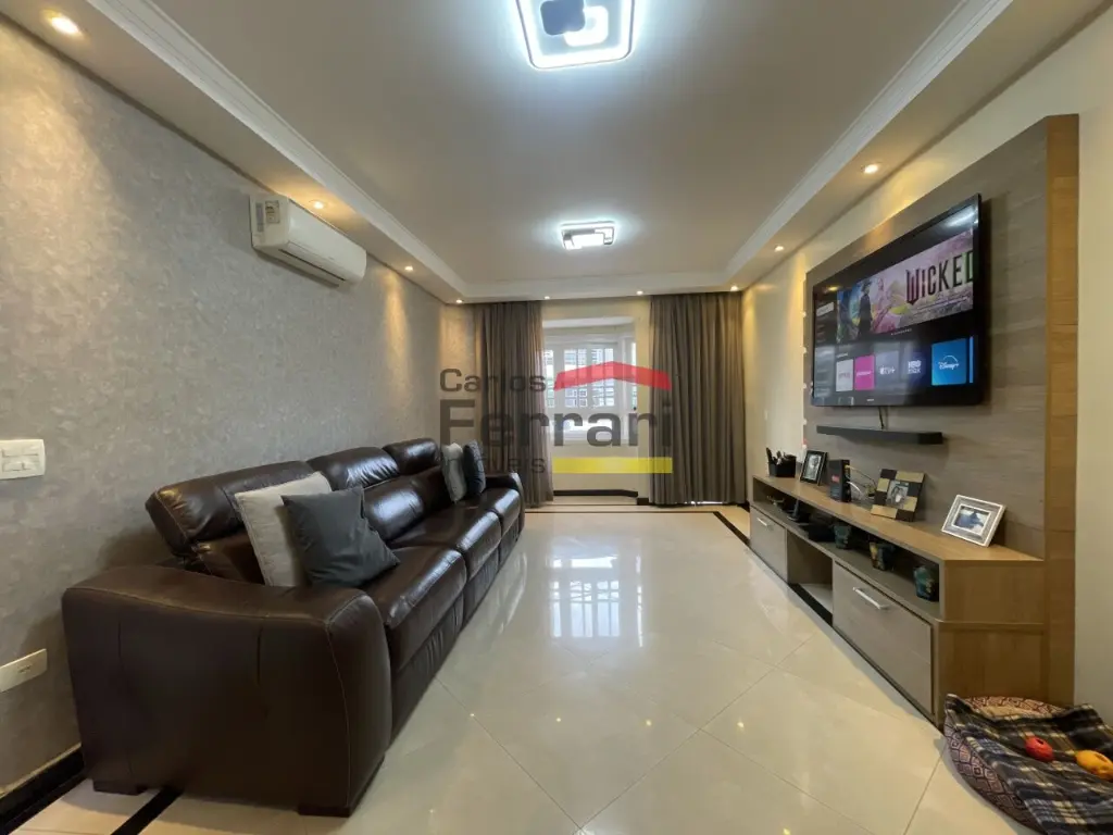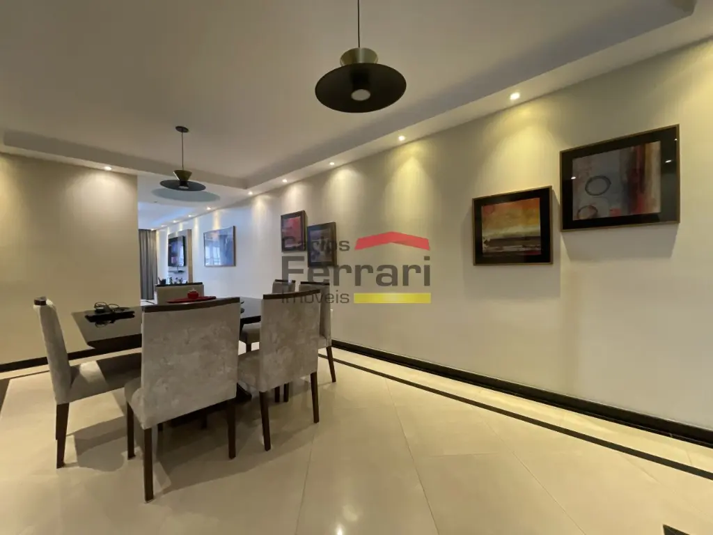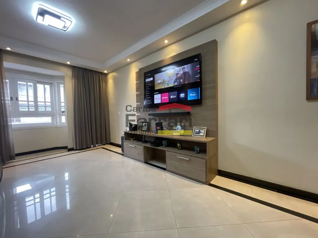 Sobrado Santa Terezinha semi mobiliado, 300m quadrados, 3suítes, master com varanda e closed, 6 vagas de garagem, possui 3 pavimentos sendo o superior com 3 suites, uma com closed e varanda, ambientes amplos e de bom gosto . com armários embutidos, ar condicionado em todos ambientes, piso em madeira, no piso inferior sala ampla revestida em porcelanato, sala de TV, sala de jantar, sanca rebaixada com iluminação de LED, Ar condicionado, área de serviço funcional, no térreo area gourmet, com churrasqueira, ilha com cooktop teto retrátil com ar condicionado .local nobre. Agende uma viasita .
