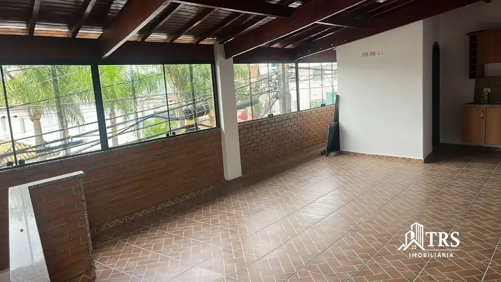 Sobrado com 2 dormitórios com ar-condicionado, sala, cozinha, 3 banheiros, amplo salão de festas no piso superior com churrasqueira e 3 vagas paralelas de garagem.
