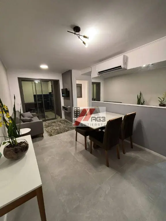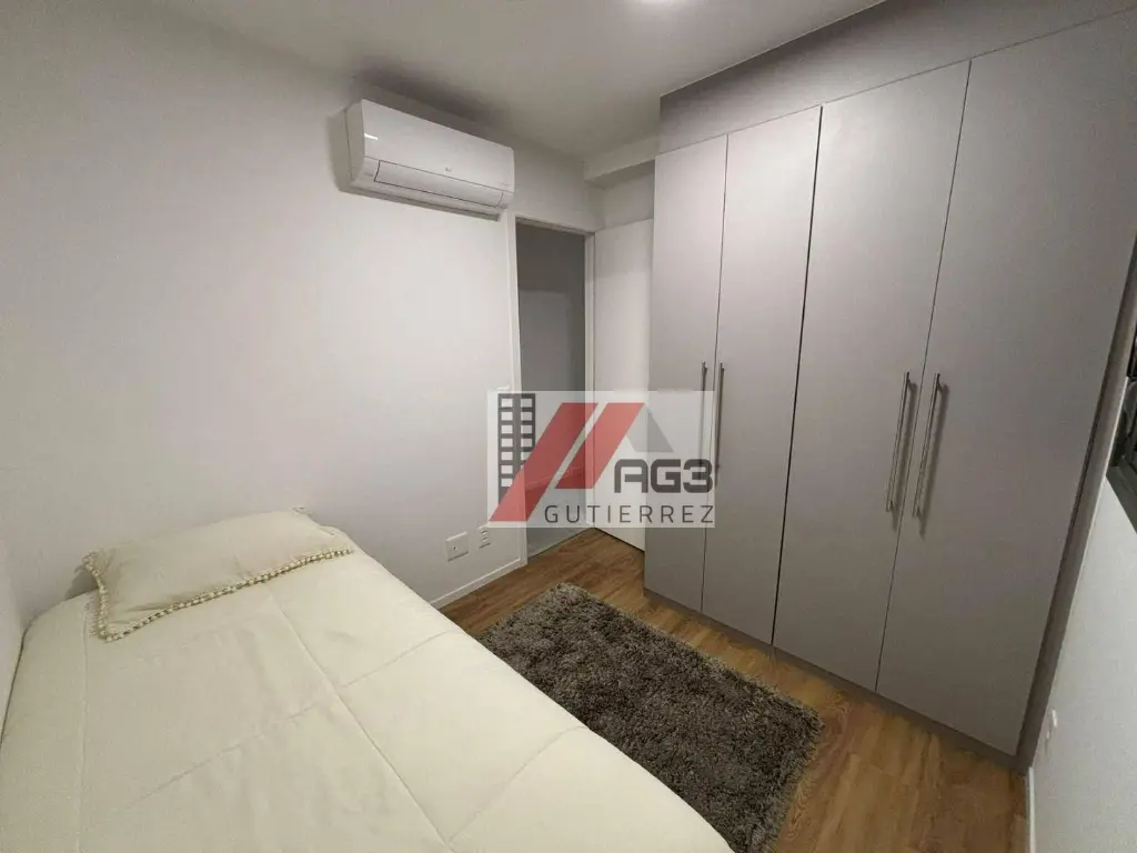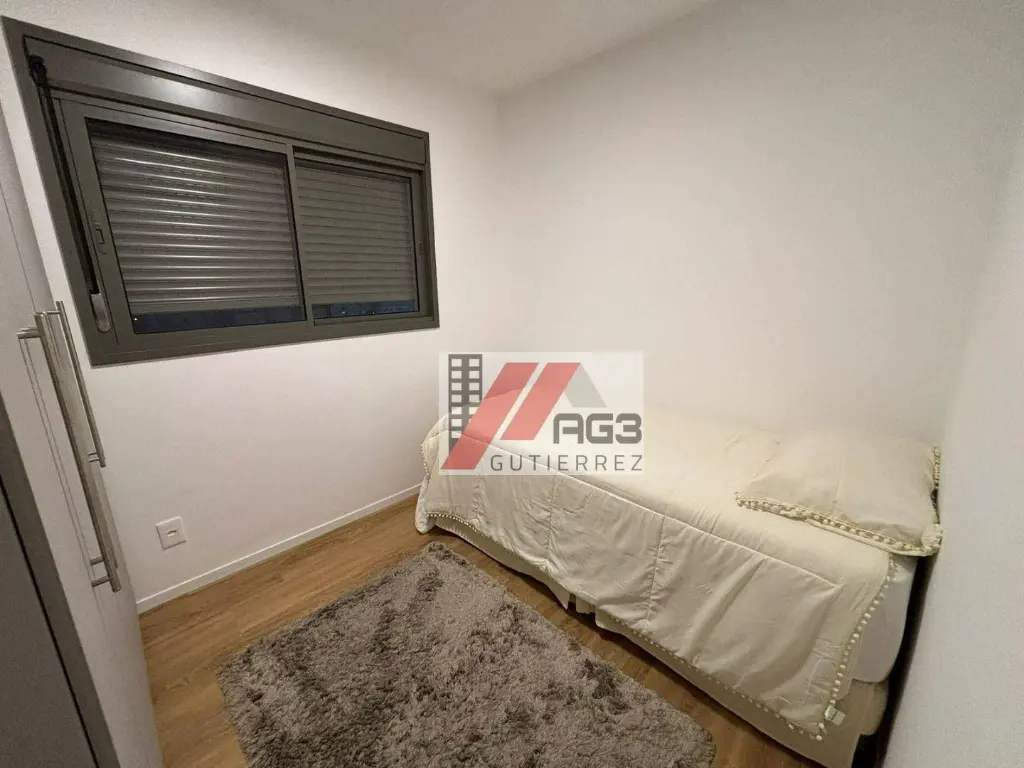 O apartamento é novo, repleto de móveis planejados e conta com 65m² de área privativa além de 1 vaga de garagem coberta, estando distribuído em 3 dormitórios (todos com ar-condicionado assim como na sala), sendo uma suíte, cozinha integrada estilo americana rica em móveis e com geladeira, fogão e forno embutidos, banheiro social, área de serviço, além de uma varanda ampla com fechamento em vidro e uma área técnica para condensadora do ar-condicionado. Além disso ele possui chuveiros a gás, está em andar alto e com vista livre.