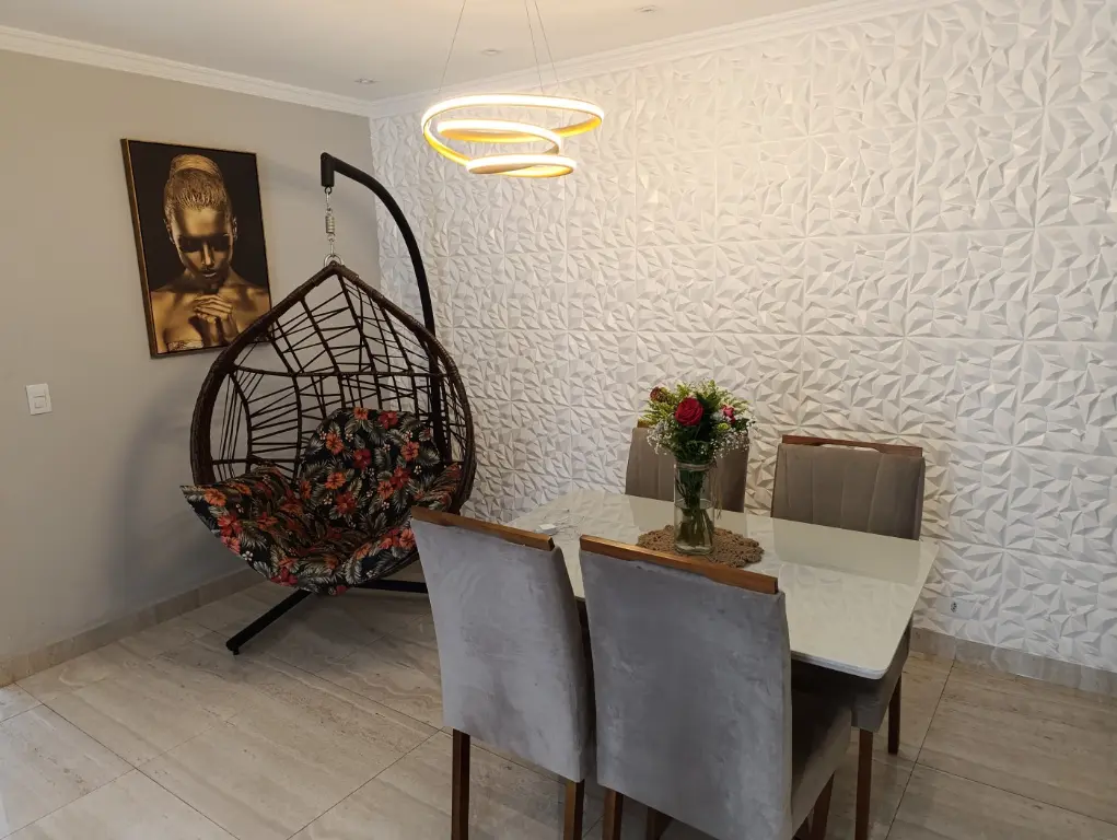 Com 3 dormitórios, sendo 2 suíte com Clossed, possui 2 banheiros, 5 vagas de garagem.