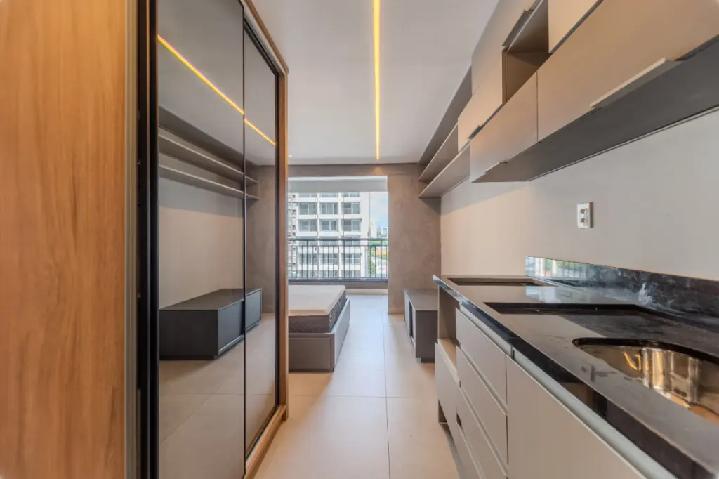 Apartamento à venda no Condomínio Edifício Constantino - conforto, modernidade e praticidade em um só lugar Excelente oportunidade para quem busca um imóvel moderno e funcional. Este apartamento possui 25 m² de área útil, muito bem distribuídos, com 1 dormitório e 1 banheiro, ideal para solteiros, jovens profissionais ou jovens casais que valorizam praticidade no dia a dia. Localizado no 8º andar, o imóvel conta com ótima iluminação natural e ventilação, proporcionando um ambiente agradável e acolhedor. Entre os diferenciais internos, destacam-se móveis planejados, água quente, interfone e infraestrutura para ar-condicionado, garantindo conforto e funcionalidade aos moradores. O Condomínio Edifício Constantino, entregue em 2023, oferece uma infraestrutura completa de lazer e conveniência, pensada para proporcionar qualidade de vida: Academia equipada Piscinas adulto e infantil Espaço gourmet e churrasqueira Salão de festas Brinquedoteca Espaço pet Lavanderia coletiva O condomínio conta ainda com portaria 24 horas, elevadores social e de serviço, além de um ambiente pet friendly, trazendo mais segurança e comodidade para toda a família. Uma excelente opção tanto para moradia quanto para investimento, com possibilidade de financiamento. Agende sua visita e venha conhecer de perto o seu novo lar.