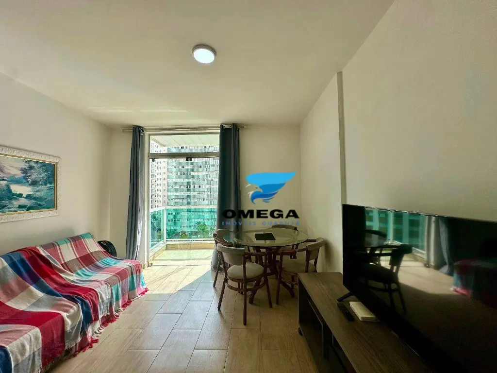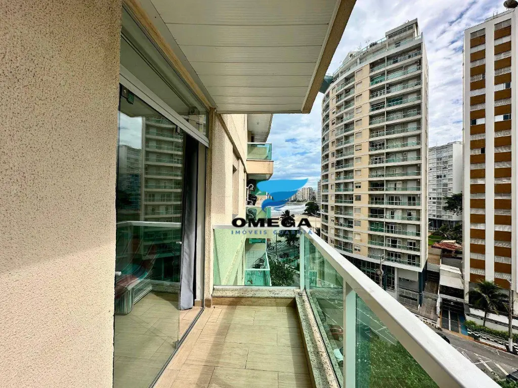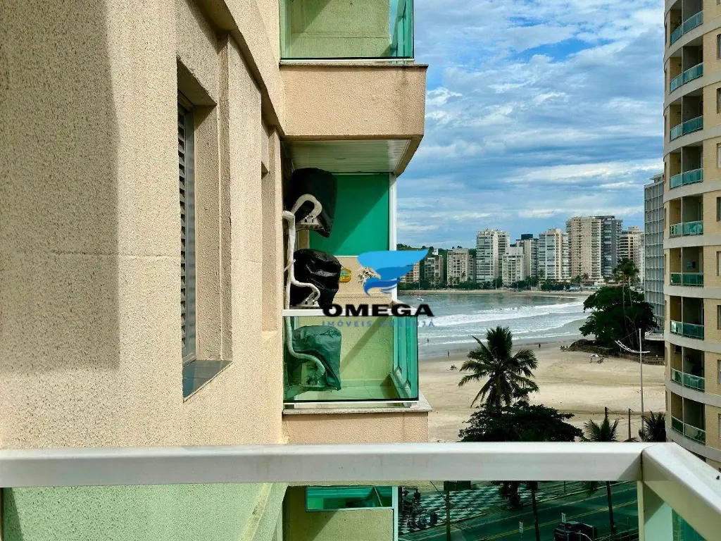 Apartamento com sacada na Praia das Pitangueiras no Guarujá - SP. Vista parcial para o mar, imóvel arejado e mobiliado. CONFIRA!