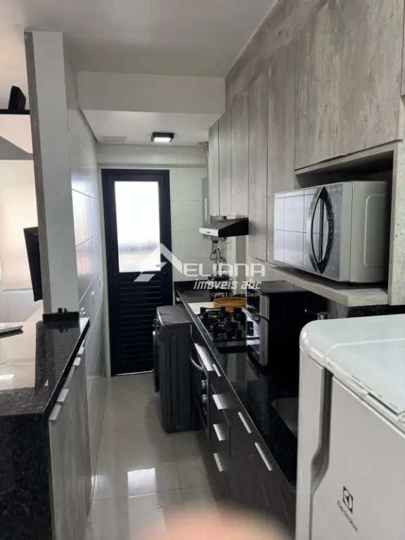 O imóvel será entregue totalmente mobiliado e equipado, incluindo geladeira, micro-ondas Panasonic, air fryer, forno elétrico embutido, armários planejados na sala, cozinha e quarto, sofá retrátil, persianas, mesa de jantar com quatro cadeiras, mesa para refeiçõesem almoço, duas banquetas para a bancada da cozinha, cama de casal, bem como televisores instalados na sala e no quarto.