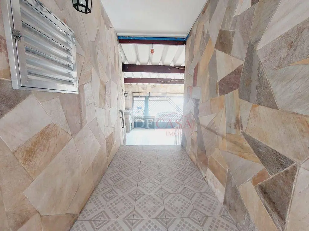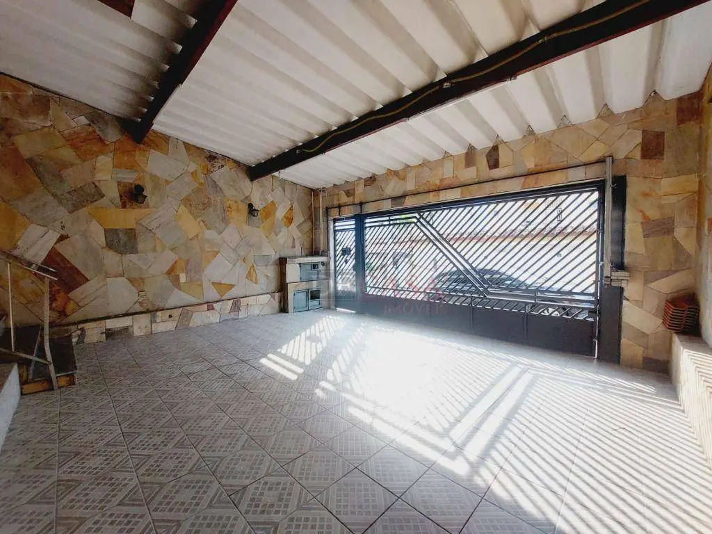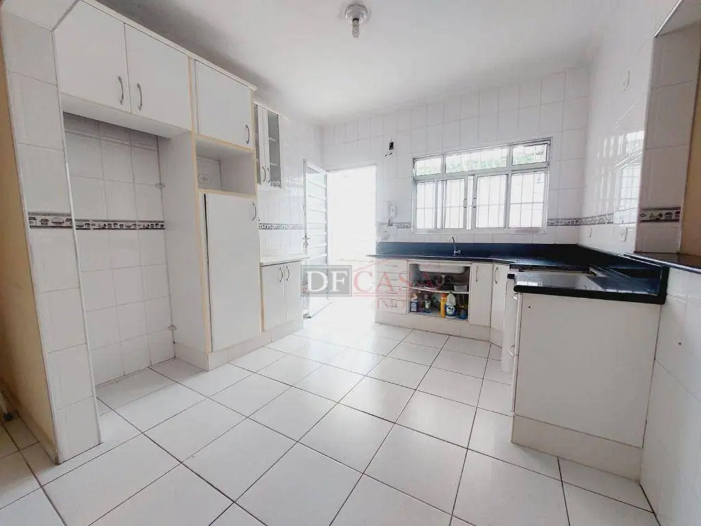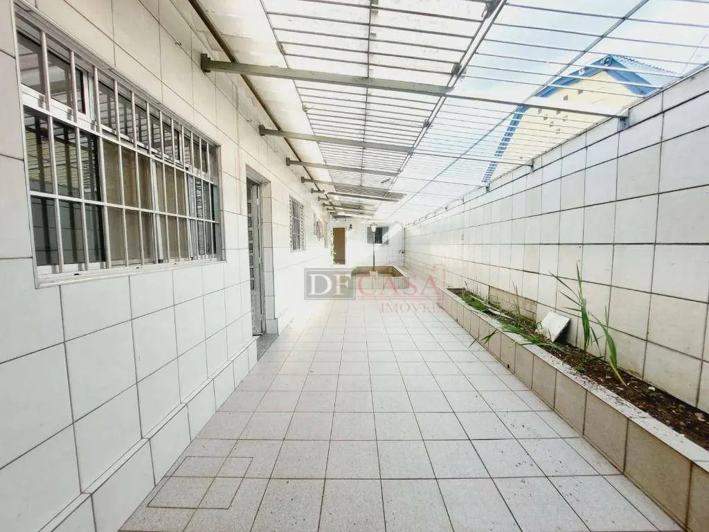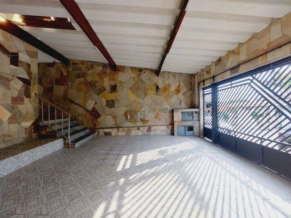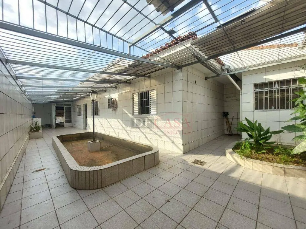 Casa com 3 vagas de garagem e portão automático, 3 dormitórios (2 na casa principal e 1 na casa do fundo), quintal, corredor lateral, cozinha, sala e lavabo, área de serviço.