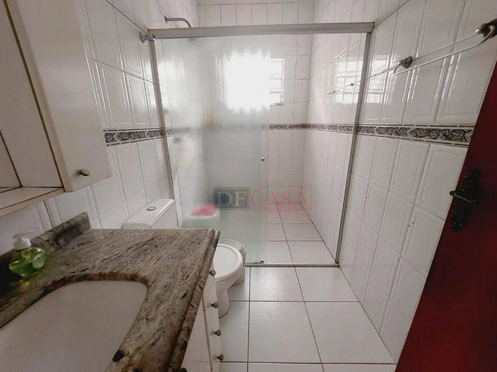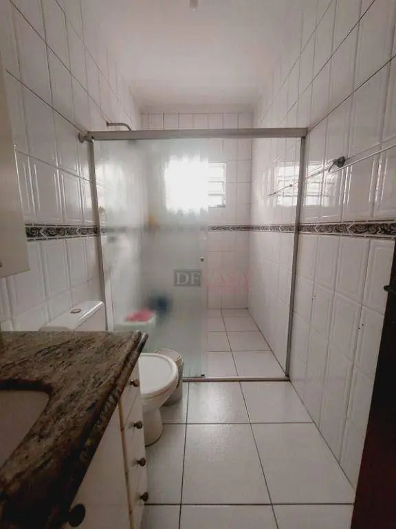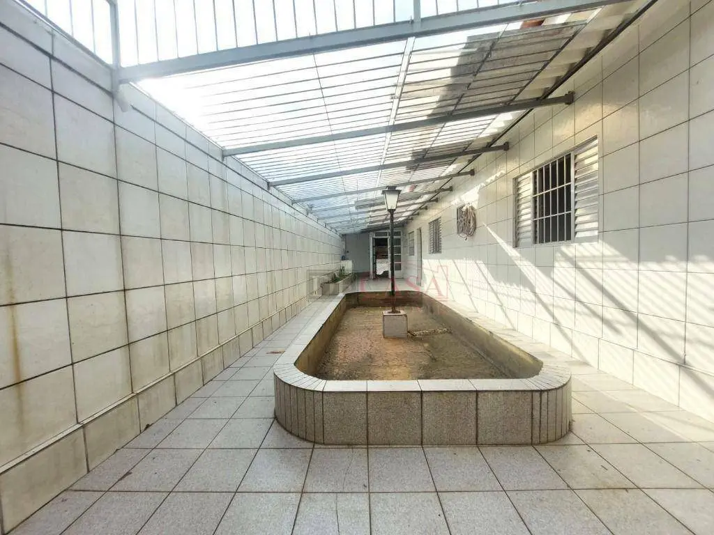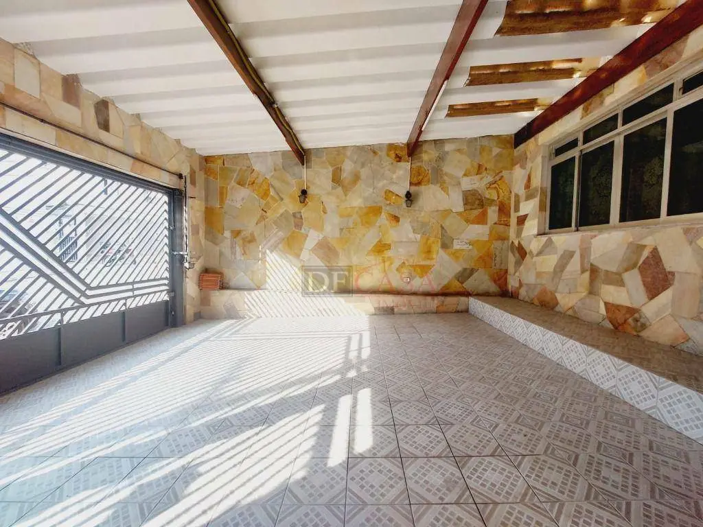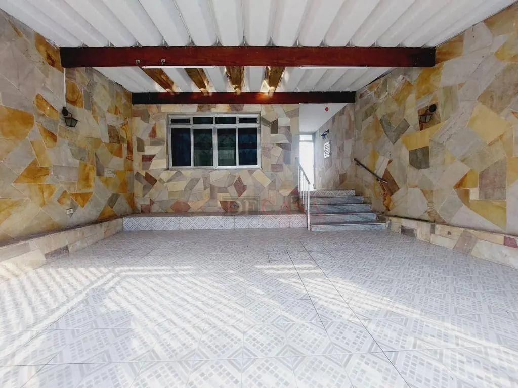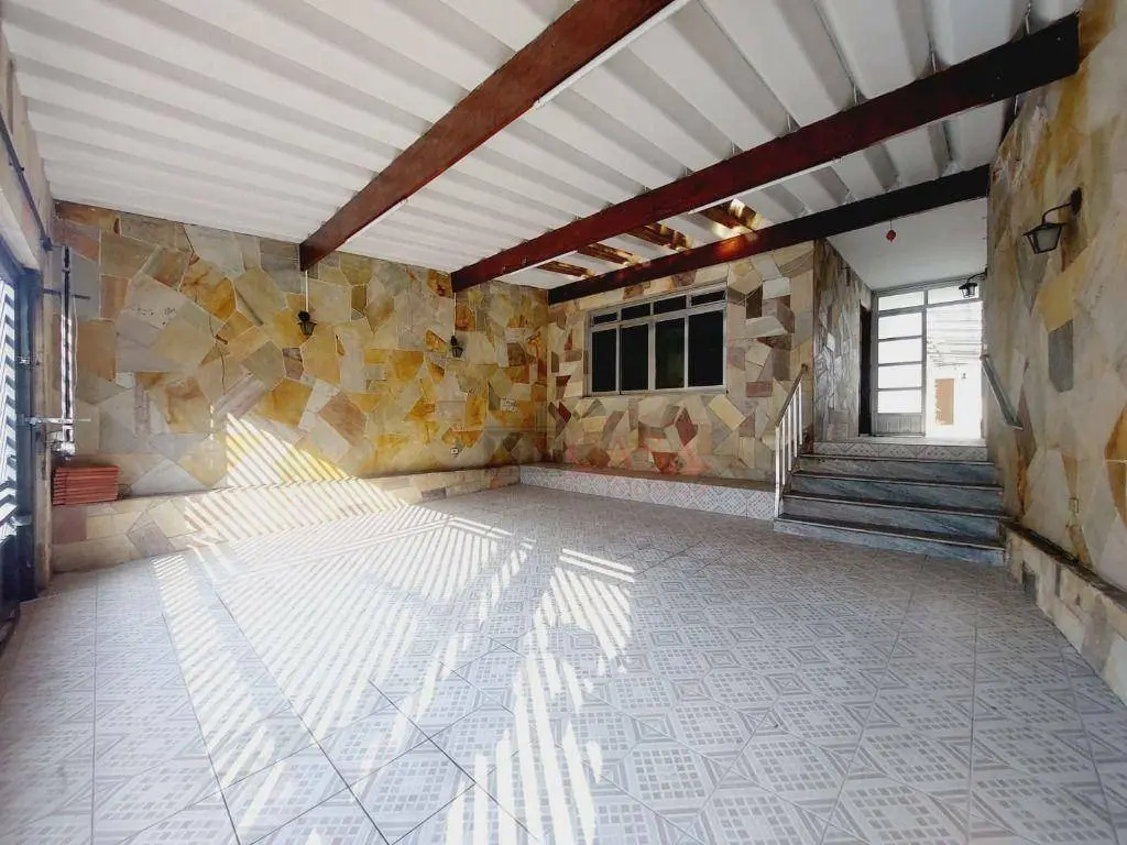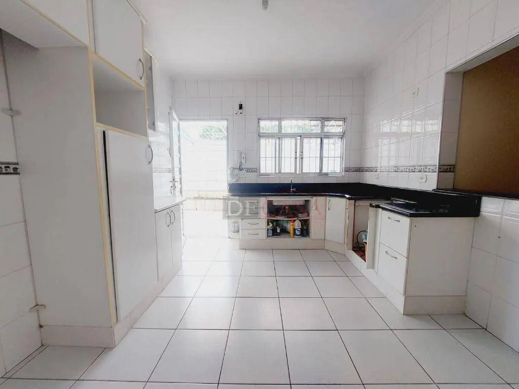 Casa com 3 vagas de garagem e portão automático, 3 dormitórios (2 na casa principal e 1 na casa do fundo), quintal, corredor lateral, cozinha, sala e lavabo, área de serviço.