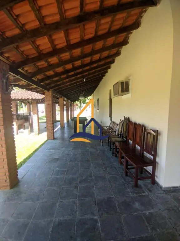 Varanda Monumental: Mais de 60 metros lineares de varanda coberta com telha romana, circundando toda a casa. O lugar perfeito para sua rede de descanso!