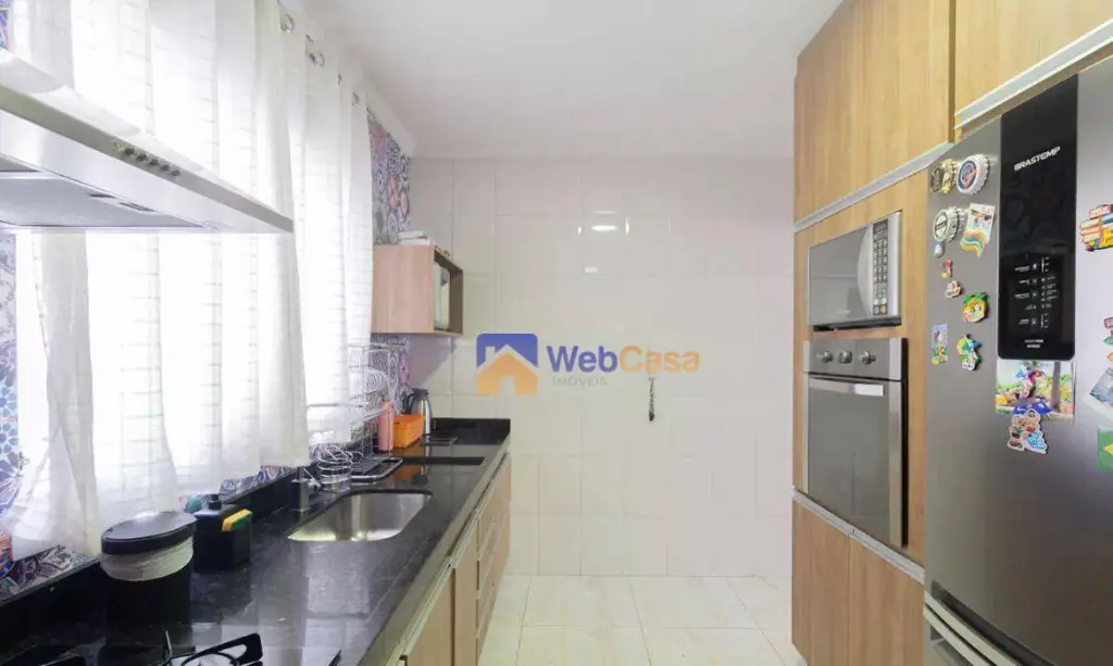 A residência dispõe de uma vaga de garagem individual, fechada e com portão automático. Os ambientes são bem planejados, com móveis sob medida de alta qualidade. A cozinha é ampla e será entregue praticamente completa, incluindo cooktop, coifa e forno elétrico. Os dormitórios possuem armários e persianas, sendo que o quarto do casal conta com ar-condicionado incluso. O banheiro foi recentemente reformado e possui armários planejados com compartimento para roupas. A lavanderia é espaçosa, bem ventilada e também equipada com armários.