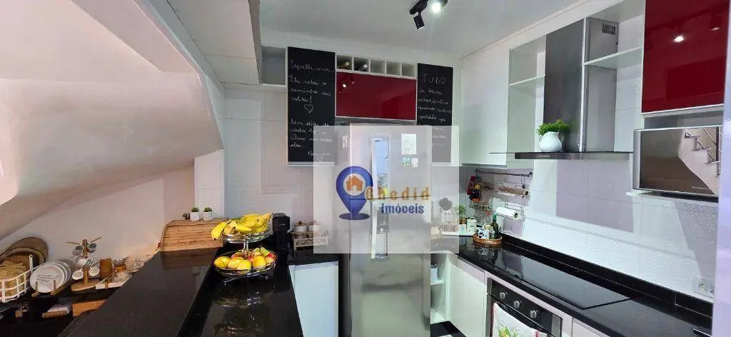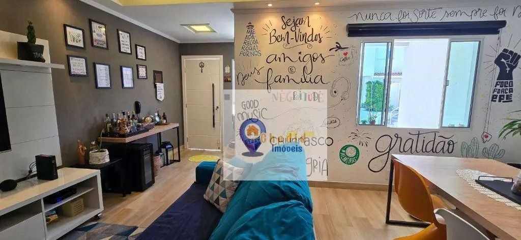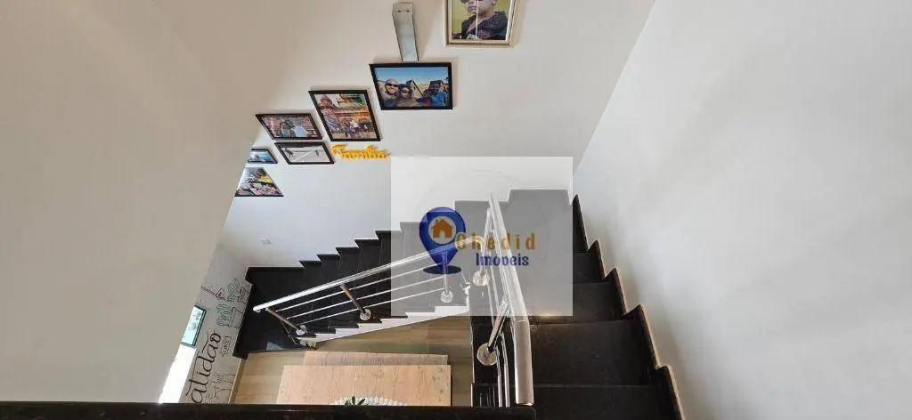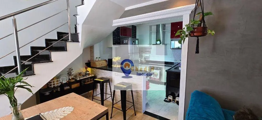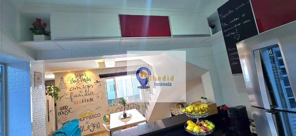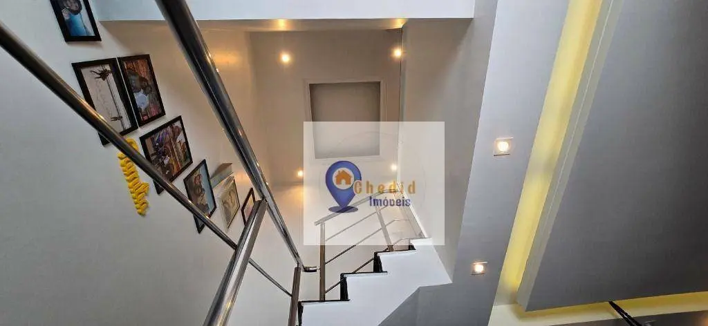 Este belo sobrado conta com 130 m² de área construída, distribuídos em 3 dormitórios com armários planejados de ótima qualidade, sendo um deles com ar-condicionado. A sala é ampla, para 2 ambientes, com piso em porcelanato, ar-condicionado e elegante sanca de gesso. Possui ainda lavabo com pia em granito esculpida e nicho embutido, além de banheiro completo com box duplo de vidro e pia em mármore.