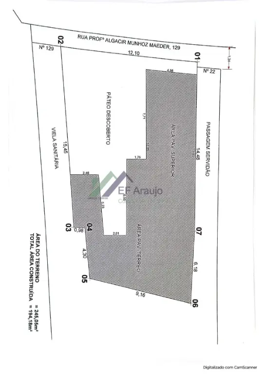 Área total de 245m² Ideal para condomínio residencial ou renda com locação Região com forte crescimento e valorização imobiliária Localização estratégica: