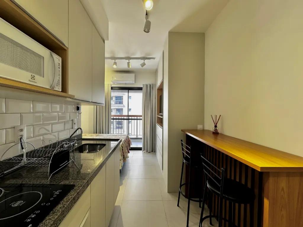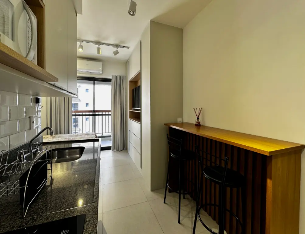 Viva o melhor de São Paulo em um Studio moderno, mobiliado e a poucos passos do metrô. Se você busca praticidade sem abrir mão do estilo, este é o seu novo endereço. Localizado no recém-entregue Condomínio Uwin Brooklin (2023), este imóvel combina a sofisticação de um dos bairros mais desejados da cidade com a funcionalidade que sua rotina exige. O Studio: Totalmente Mobiliado: É só entrar com as malas! Decoração funcional e otimizada. Conforto Térmico: Banheiro com chuveiro a gás e ventilação natural (raridade em studios!). Vista Livre: Desfrute de um horizonte aberto e excelente iluminação natural. Acessibilidade: Unidade e condomínio planejados para total mobilidade. Infraestrutura de Clube (Lazer e Coworking): No Uwin, sua casa se estende para áreas comuns de alto padrão: Relax: Piscina e jardim com paisagismo moderno. Social: Espaço Gourmet, churrasqueira e salão de festas. Saúde & Praticidade: Fitness completo, lavanderia coletiva e bicicletário. Business: Salão de reuniões (perfeito para o seu home office). Localização Imbatível: Localizado no "coração financeiro" e residencial do Brooklin, você estará: Ao lado da Estação Brooklin do Metrô (Linha Lilás). Próximo aos eixos da Avenida Santo Amaro e Avenida Vereador José Diniz. Cercado por infraestrutura completa: padarias, farmácias, hospitais e shoppings. Fácil acesso ao Aeroporto de Congonhas. Diferencial: Prédio novo (2023), oferecendo o que há de mais moderno em segurança e tecnologia condominial. Não deixe essa oportunidade passar!