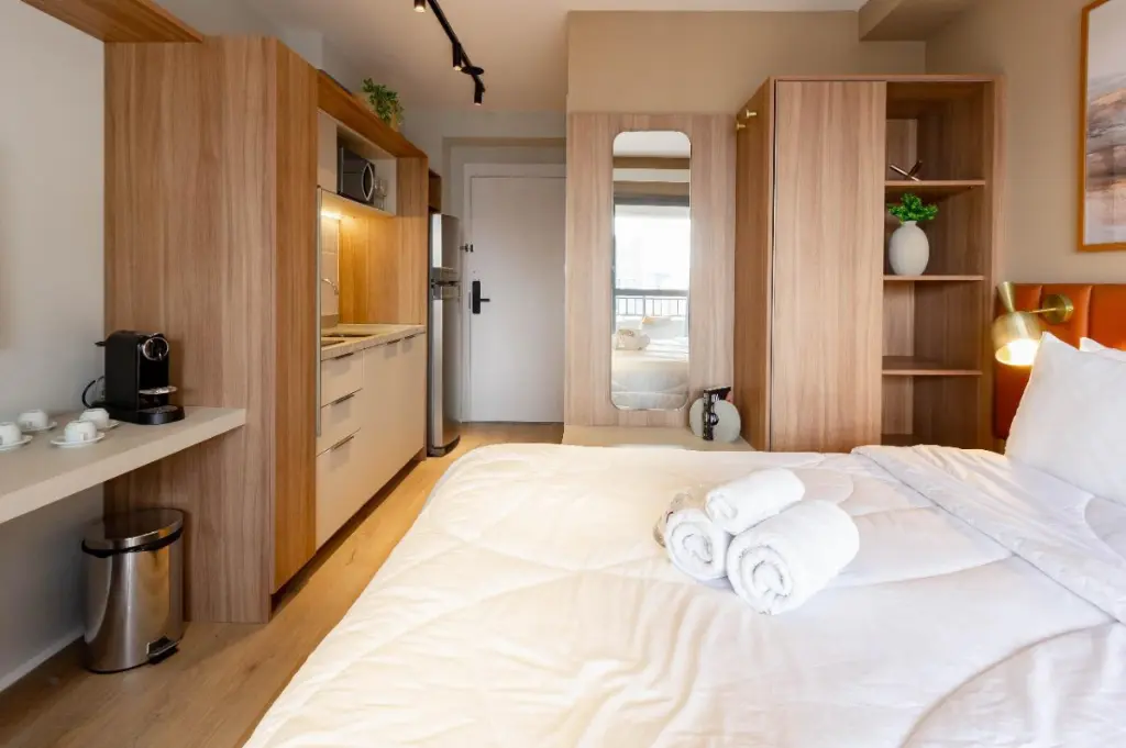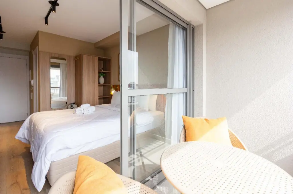 Studio NR à Venda em Moema Pronto para Rentabilizar. Faturando muito bem já. Studio totalmente mobiliado, pronto para locação de curta ou longa temporada. Atualmente em operação como short stay, com excelente potencial de renda. Design moderno e linda vista Mobília completa + enxoval Armários no quarto e cozinha Portaria 24h e acesso por senha Condomínio com academia, spa, sauna, piscina, salão de festas e churrasqueira (lazer no 1º e 27º andar). A apenas 550m do Metrô Moema, próximo ao Shopping Ibirapuera, restaurantes e serviços. Ideal para investir ou morar bem em uma das melhores regiões de São Paulo.