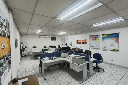 Conta com 2 pavimentos sendo divididos em: 5 escritórios, 5 lavabos, 2 vestiários, 1 estoque, 2 laboratórios, 1 sala de reunião, 1 showroom.