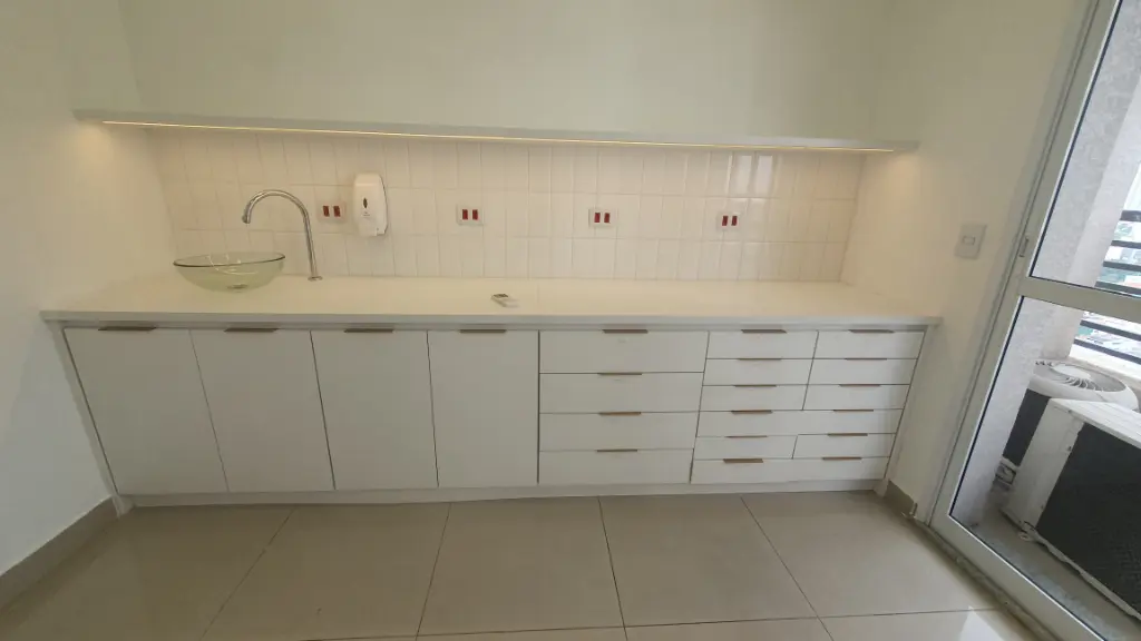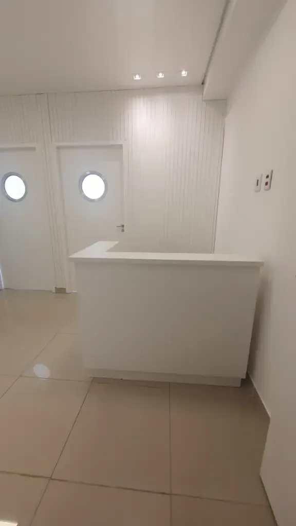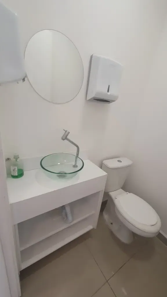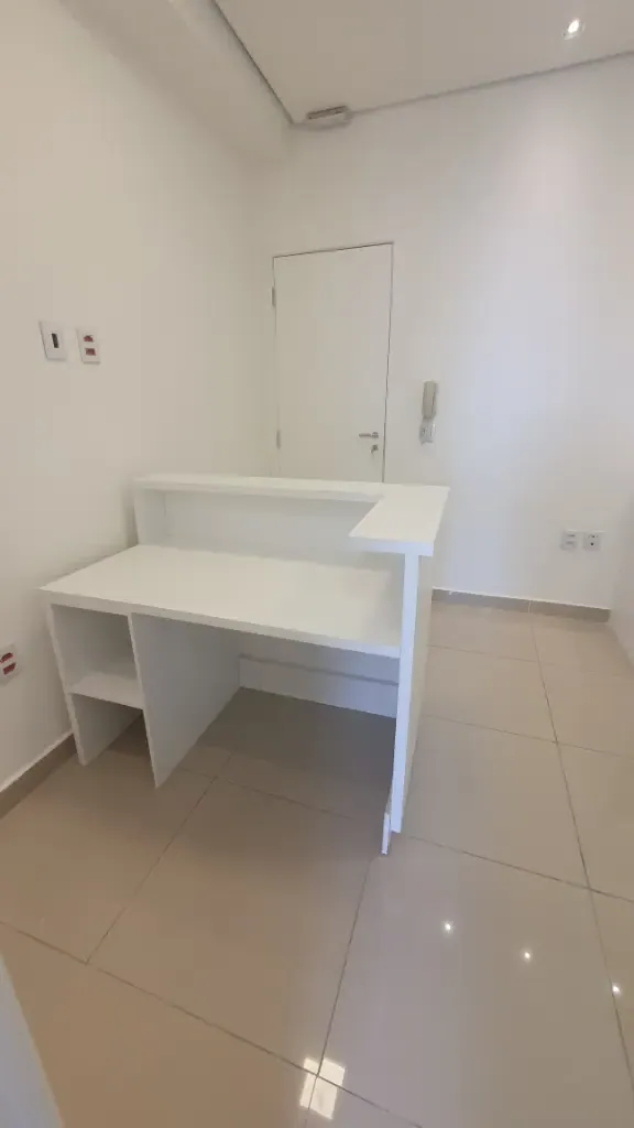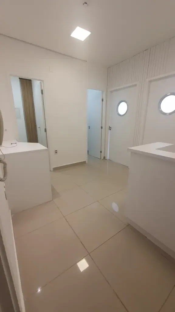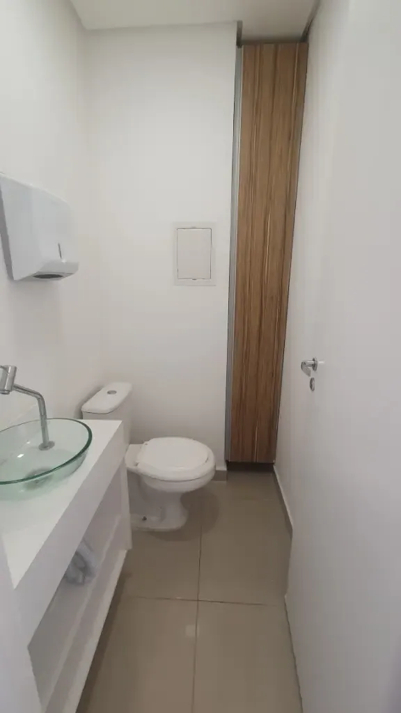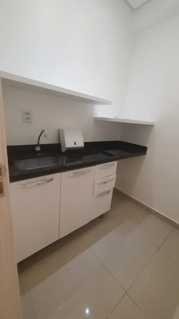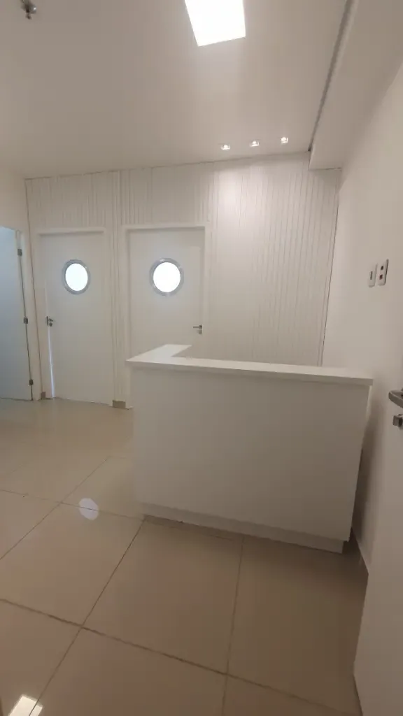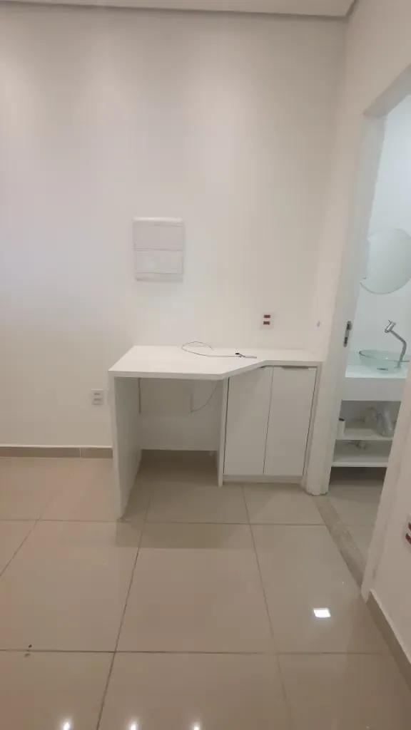 Sala comercial com dois aparelhos de ar condicionado, piso em porcelanato, teto em gesso com luminárias, duas divisórias, armários planejados, recepção com balcão e ponto de filtro, copa com gabinete, prateleira, tomadas, ponto de filtro, banheiro com armário, cuba, porta papel, sacada, 01 vaga livre, prédio com gerador de energia, 07 elevadores de acesso, elevador de serviço, banheiro no térreo com acessibilidade, portaria com funcionamento 24 horas, câmeras de segurança nos andares e entorno do condomínio, praça com bancos, sala de reunião, mercadinho interno de auto atendimento e pequeno espaço para almoçar, lojas de conveniência no térreo, vagas para visitantes e portadores de necessidades especiais. Condomínio: 460,00 Iptu: 170,00 mês Aceita Seguro Fiança