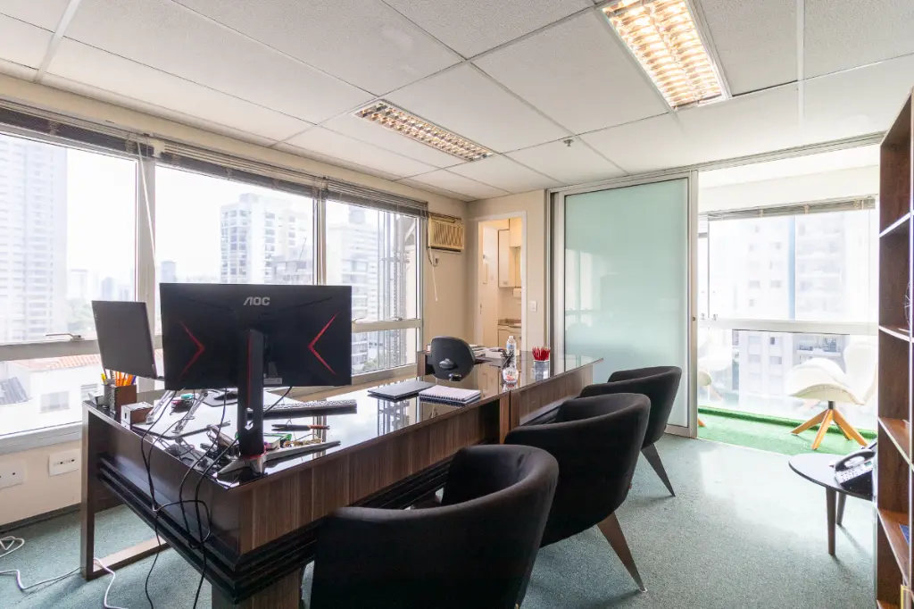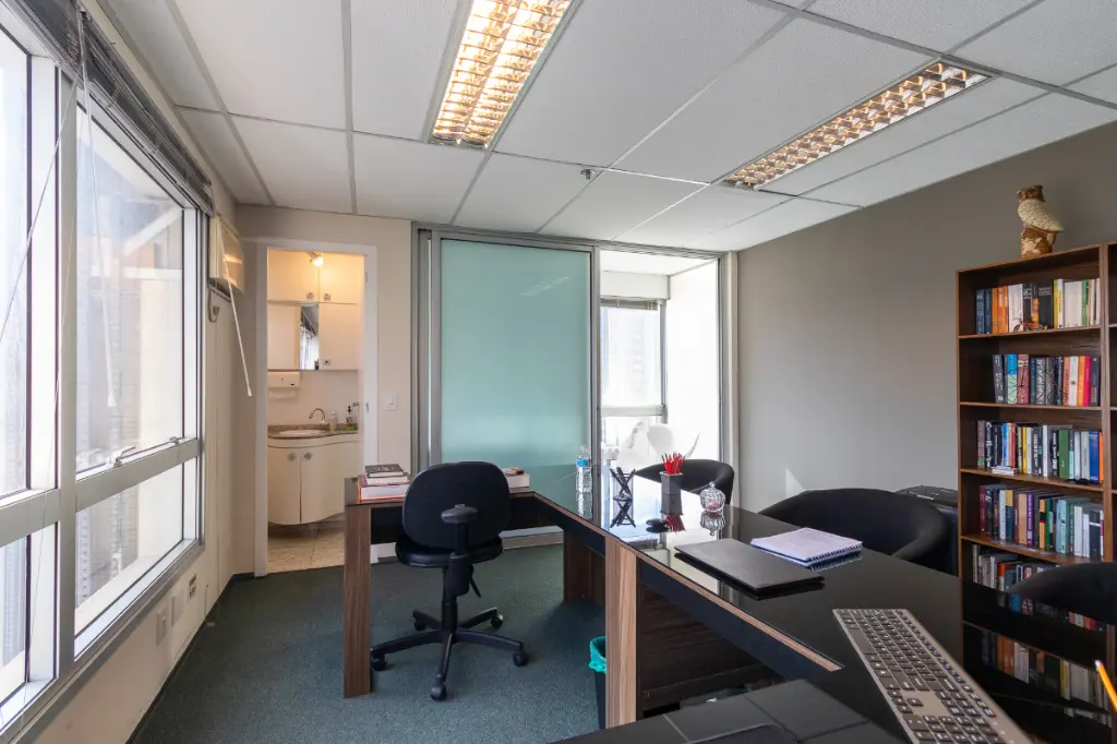 Excelente oportunidade no coração do Brooklin Paulista! Conjunto comercial com 38m² muito bem distribuídos, contando com duas salas climatizadas com ar-condicionado, janelas do teto ao chão que garantem excelente iluminação natural, dois banheiros, sacada envidraçada e uma vaga de garagem. O condomínio oferece toda a infraestrutura necessária para o seu negócio: portaria 24 horas, sistema de segurança com catraca, zelador, gerador, além de garagem com auxílio de manobrista. Localização privilegiada com fácil acesso às avenidas Santo Amaro, Morumbi, Vereador José Diniz e Jornalista Roberto Marinho, além da proximidade com a estação de metrô Brooklin. A região é amplamente atendida por comércio variado, incluindo supermercados, padarias, farmácias e excelentes restaurantes. Está também a poucos minutos dos shoppings Morumbi e Market Place. Ideal para empresas que buscam conforto, praticidade e uma localização estratégica em São Paulo.