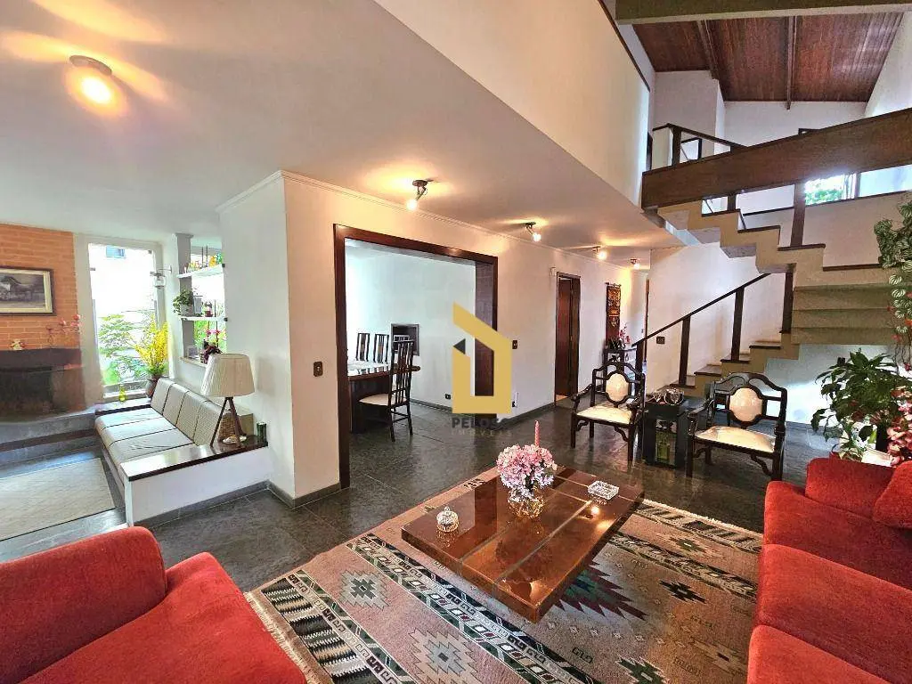 4 dormitórios sendo 2 suítes e 2 suítes americanas, sala de estar, jantar e lareira, escritório, lavabo, cozinha, lavanderia, despensa. Varanda na sala e em 2 suítes.